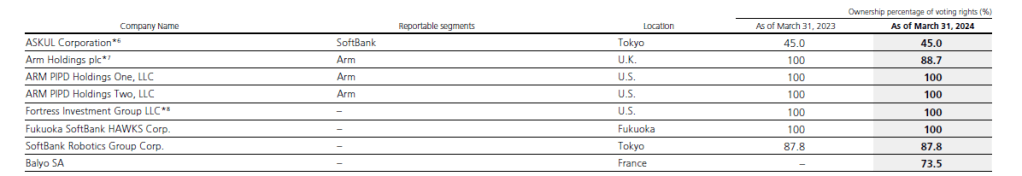 *7 A corporate reorganization was undertaken in August 2023, pursuant to which Arm Holdings Limited, a former subsidiary of Arm Limited, acquired all the issued ordinary shares of Arm Limited, thereby making it a wholly-owned subsidiary. Subsequently, Arm Holdings Limited changed its name to Arm Holdings plc.