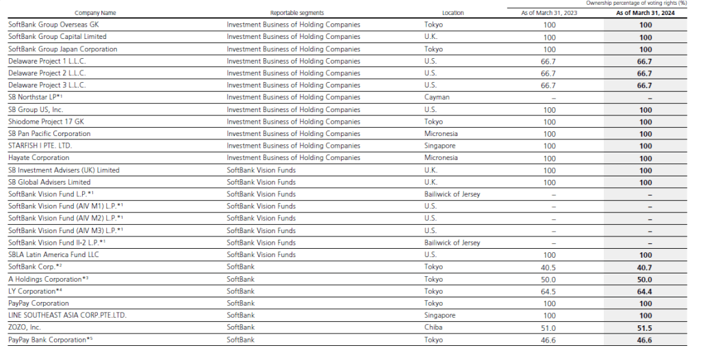 *2 The Company does not own a majority of SoftBank Corp.’s voting rights. However, the Company has determined that it has substantial control over SoftBank Corp. and included it in the scope of consolidation, considering the fact that the Company holds 40.7% of the voting rights of SoftBank Corp., the dispersion of voting rights in SoftBank Corp. and the voting patterns exercised in SoftBank Corp.’s past shareholders meetings.