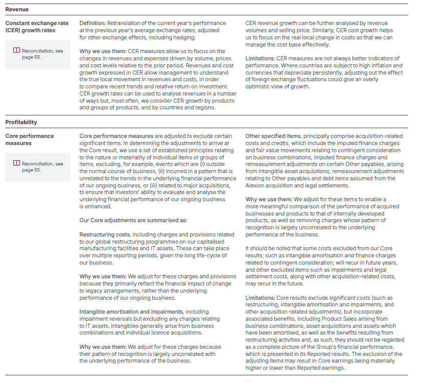 1 Effective 1 January 2025, the Group has replaced the measure ‘Product Sales Gross Margin’ with the measure ‘Gross Margin’. Previously, the measure excluded margin related to Alliance Revenue and Collaboration Revenue. The new measure is calculated using Gross profit as a percentage of Total Revenue, thereby encompassing all revenue categories, and is intended to provide a more comprehensive measure of total performance.