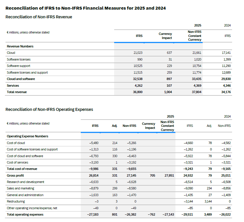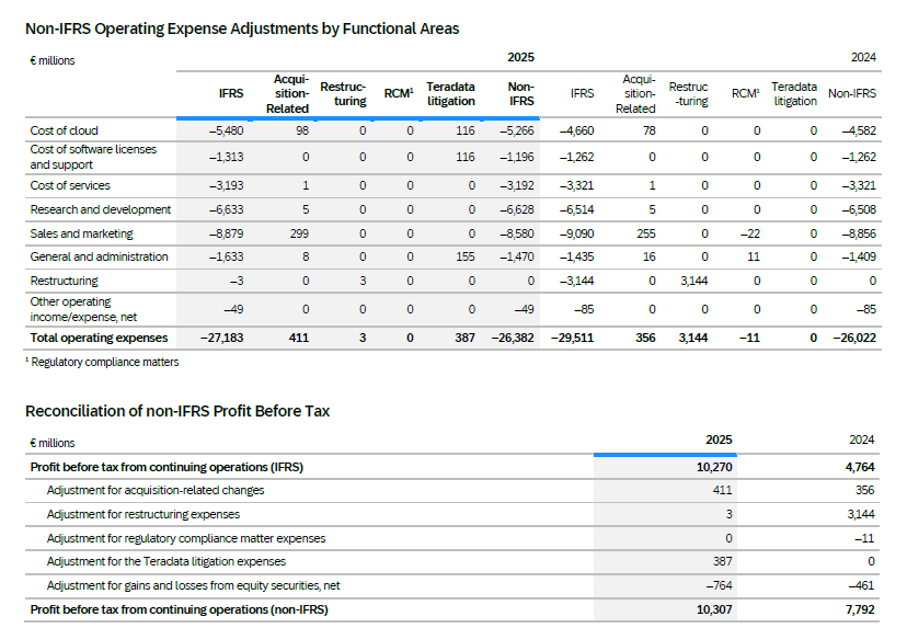 Effective 2025, numbers that are identified as operating profit (non-IFRS) are adjusted by excluding expenses related to the Teradata litigation, since these fees and expenses are not indicative of our operating performance or management’s allocation of resources to our ongoing business activities. By excluding these non-recurring expenses, SAP will provide additional insight into its operating performance, increase period-over-period comparability, and provide users of SAP’s financial statements the information that our management uses to manage the business.