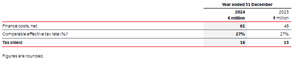 1. Tax shield is calculated as comparable effective tax rate times finance costs, net, as illustrated below: