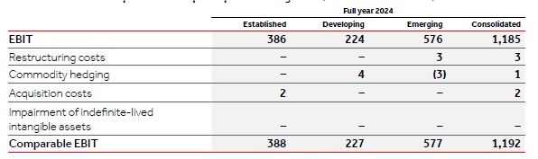 In discussing the performance of the Group, ‘comparable’ measures are used. Comparable measures are calculated by deducting from the directly reconcilable IFRS measures the impact of the Group’s restructuring costs, the mark-to-market valuation of the commodity hedging activity, the acquisition, integration and divestment-related costs, the impairment of goodwill and indefinite-lived intangible assets, the Russia-Ukraine conflict impact and certain other tax items, which are collectively considered as items impacting comparability, due to their nature. More specifically, the following items are considered as items that impact comparability: