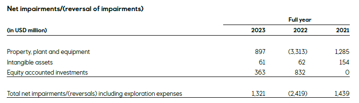 In 2023, impairment reversals mainly relate to increased expected reserves on a producing asset. In 2022, the impairment reversal was caused by increased price assumptions and higher reserves estimates, while in 2021, the impairment was due to a negative reserve revision.
