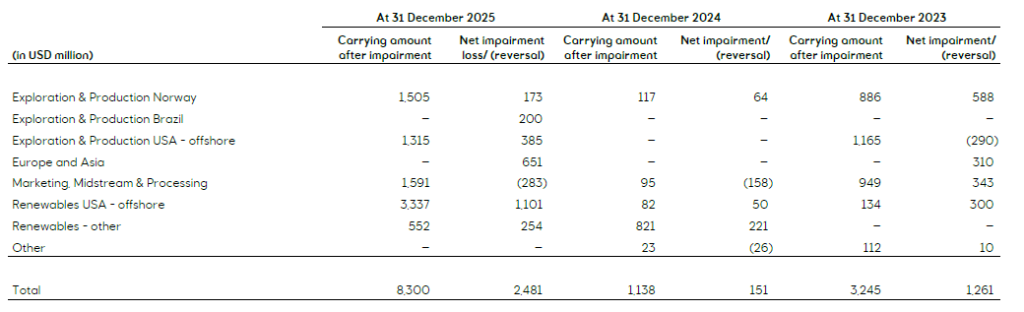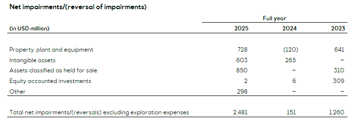 In 2025, the impairments related to producing assets in the Gulf of America following reduced production estimates, increased cost estimates and lower price assumptions. In 2023, the impairment reversal mainly related to increased expected reserves on a producing asset.