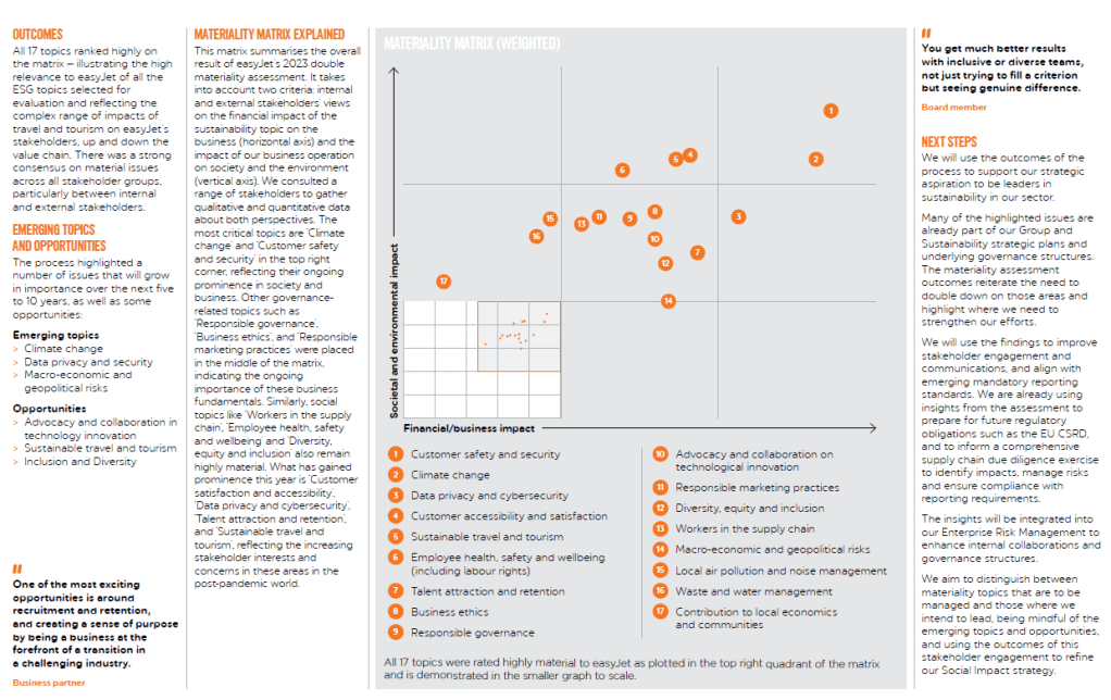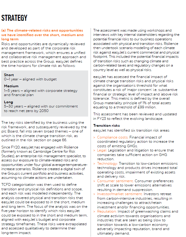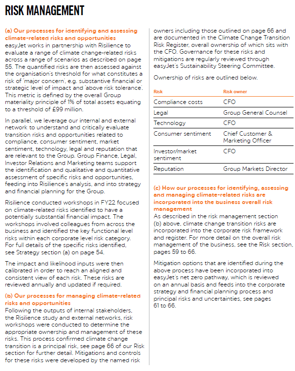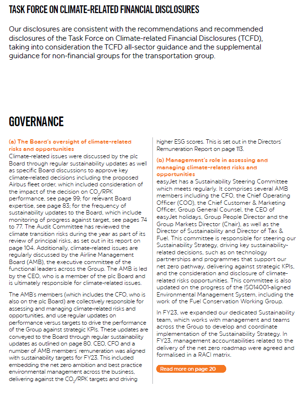 Climate change, principal risks, TCFD, SECR, SASB, environmental disclosures, airline easyJet plc – Annual report – 30 September 2023 Industry: airline RISK MANAGEMENT (extract) SUSTAINABILITY (extract) Share this: Click to share on X (Opens in new window) X Click to share on Facebook (Opens in new window) Facebook Like Loading...