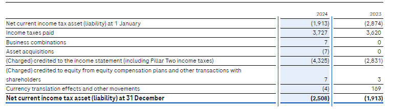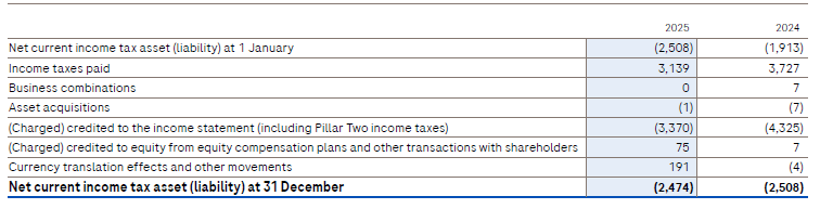 Current income taxes: movements in recognised net assets (liabilities) in millions of CHF
