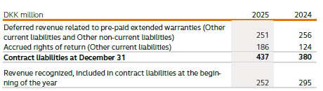 As of December 31, 2025, accrued customer rebates amounted to DKK 932 million (2024: DKK 1,032 million).
