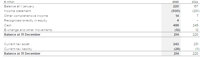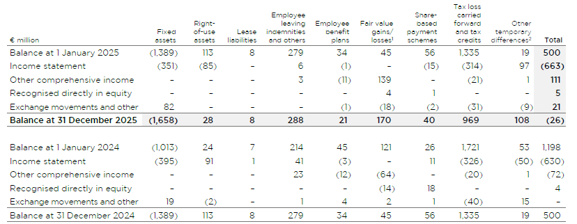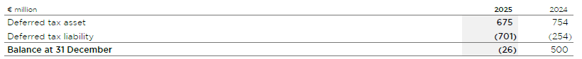 2 Other temporary differences include a deferred tax asset in relation to corporate interest of €64 million (2024: €36 million). There were no deferred tax liabilities in relation to unremitted earnings (2024: €5 million).