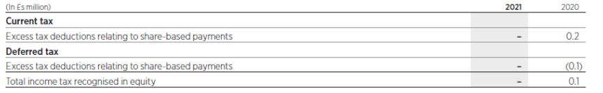 Income tax recognised directly in equity