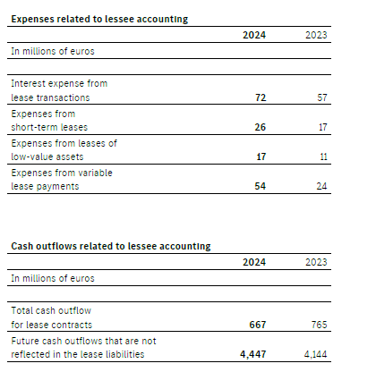 The Mercedes-Benz Group generally also applies the option for contracts comprising lease components as well as non-lease components not to split these components.