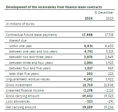 At 31 December 2024, receivables from financial services with a carrying amount of €10,536 million (2023: €11,139 million) were pledged mostly as collateral for liabilities from ABS transactions (see also Note 25).
