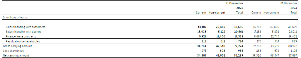 At 31 December 2025, receivables from financial services with a carrying amount of €8,116 million (2024: €10,536 million) were pledged mostly as collateral for liabilities from ABS transactions. Further information is provided in Note 24.