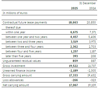 At 31 December 2025, equipment on operating leases with a carrying amount of €11,306 million was pledged as security for liabilities from ABS transactions (2024: €10,890 million). These liabilities related to a securitization transaction of future lease payments on leased vehicles. Further information is provided in Note 24.