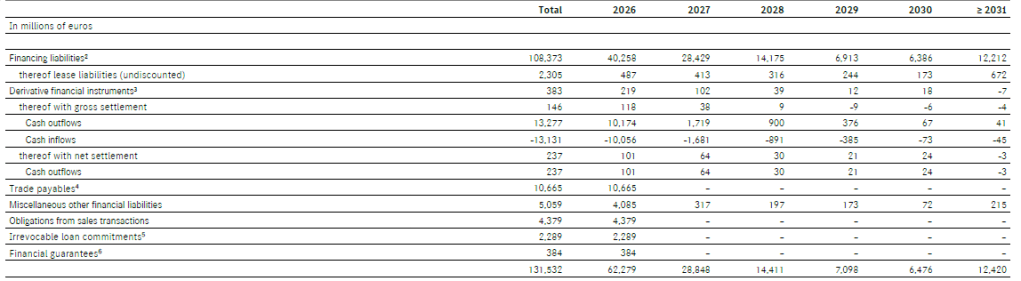The following overview of liquidity runoff shows how the cash flows in connection with liabilities, derivative financial instruments and irrevocable loan commitments and financial guarantees as of 31 December 2025 may affect the Group’s future liquidity situation.