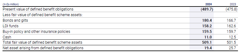 The net amount included in the Consolidated Balance Sheet arising from the Group’s obligations in respect of its defined benefit pension schemes is as follows:
