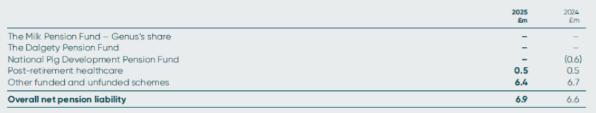 The Group operates a closed defined benefit scheme for a small number of former employees of the National Pig Development Company Limited. The total market value of scheme assets and liabilities at 30 June 2025, under the provisions of IAS 19, were £4.7m (2024: £5.4m) and £4.7m (2024: £4.8m), respectively.