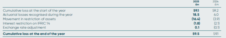 At 30 June 2025, the MPF was in an overall net pension asset position of £16.2m (2024: £31.9m). However, the Company does not have the unilateral right to this surplus and therefore in line with IFRIC 14, the recognition of this asset is restricted.