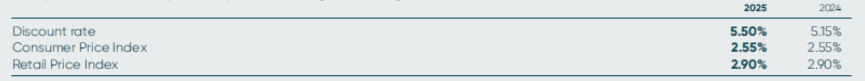 - Consumer Price Index (‘CPI’) price inflation is expected to be 0.7% per annum lower than Retail Price Index (‘RPI’) price inflation until 31 March 2030, then less 0.1% per annum thereafter; and