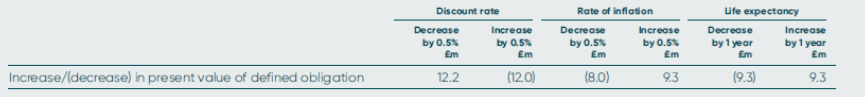 The sensitivities assume the funds’ assets remain unchanged. However, in practice changes in interest rates and inflation will also affect the value of the funds’ assets. The funds’ investment strategy is to hold matching assets with values that move in line with the liabilities of the fund, to protect against changes in interest rates and inflation.