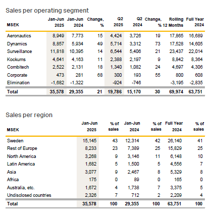 Saab AB – Half year report – 30 June 2025