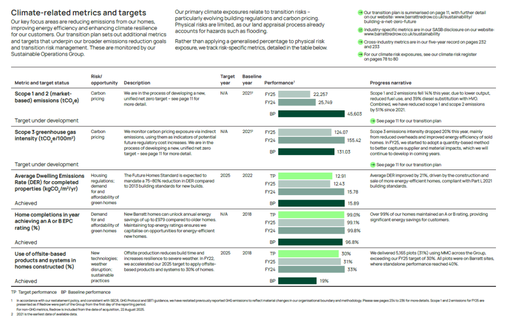 Climate change, TCFD and Companies Act disclosures, housebuilding Barratt Redrow plc – Annual report – 29 June 2025 Industry: real estate Share this: Click to share on X (Opens in new window) X Click to share on Facebook (Opens in new window) Facebook Like Loading...
