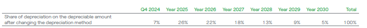 Another significant change in estimates in 2024 related to adjustment of depreciations and depreciating methods of certain asset classes. IFRS accounting standards require depreciation methods to be reviewed periodically and that the depreciation methods used reflect the expected way in which the economic benefits of the assets will be consumed. When significant changes occur in the expected distribution of consumption of future economic benefits from certain assets, the method is being changed to reflect the changed distribution of consumption of benefits.
