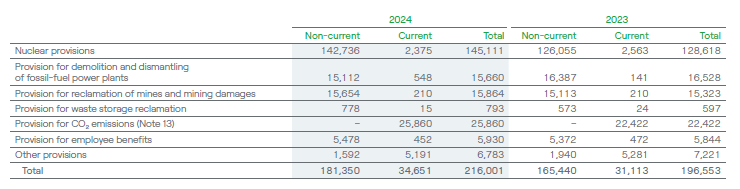 The most significant changes in estimates in 2024 related to the provision for long-term spent fuel storage due to the increase of expected contribution to the nuclear account depending on electricity generated in nuclear power plants and to the change of the discount rate and provision for nuclear decommissioning due to the change of the discount rate.