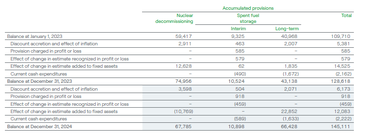 The Group makes a provision for nuclear decommissioning, a provision for interim storage of spent nuclear fuel and other radioactive waste, and a provision for the funding of subsequent permanent disposal of spent nuclear fuel and irradiated reactor components (see Note 21.1).