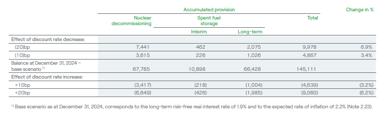 The following table shows the sensitivity of nuclear provisions to changes in the discount rate, keeping all other parameters unchanged, as at December 31, 2024 (in CZK millions):