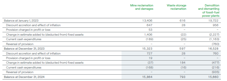 21.2. Provisions for Mine Reclamation and Mining Damages, Waste Storage Reclamation and Demolition and Dismantling of Fossil-fuel Power Plants