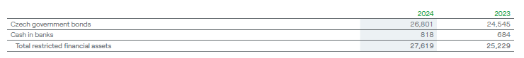 The overview of restricted financial assets at December 31, 2024 and 2023, is as follows (in CZK millions):