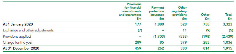 In the course of its business, the Group is engaged in discussions with the PRA, FCA and other UK and overseas regulators and other governmental authorities on a range of matters. The Group also receives complaints in connection with its past conduct and claims brought by or on behalf of current and former employees, customers, investors and other third parties and is subject to legal proceedings and other legal actions. Where significant, provisions are held against the costs expected to be incurred in relation to these matters and matters arising from related internal reviews. During the year ended 31 December 2020 the Group charged a further £379 million in respect of legal actions and other regulatory matters, and the unutilised balance at 31 December 2020 was £380 million (31 December 2019: £528 million). The most significant items are as follows.