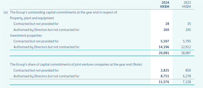 (b) At 31st December 2024, the Group had unprovided contractual obligations for future repairs and maintenance on investment properties of HK$521 million (2023: HK$267 million).