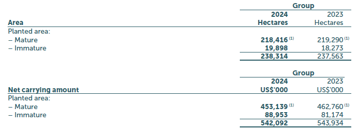 At the end of the financial year, the Group’s total planted area and related value of mature and immature plantations are as follows:–