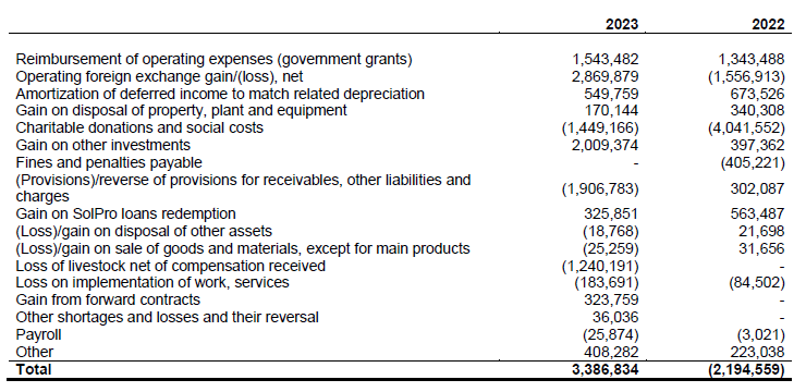 Included in the above amounts there are losses related to realised biological assets and agricultural produce amounting to RR 12,084,785 (2022: loss RR 11,733,592).