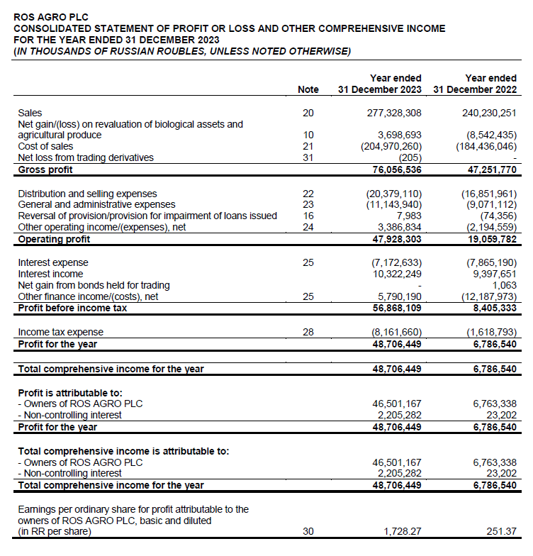 ROS AGRO PLC – Financial statements – 31 December 2023