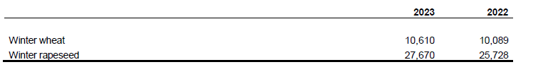 The average forward market prices (Russian Roubles/tonne, excluding VAT) used for fair value measurement of unharvested crops were as follows: