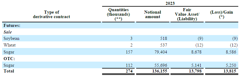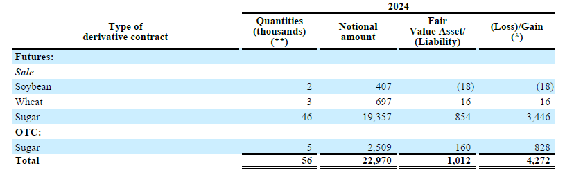 As part of its business operations, the Group may uses a variety of derivative financial instruments to manage its exposure to the financial risks discussed above. As part of its strategy, the Group may enter into derivatives of (i) interest rate to manage the composition of floating and fixed rate debt; (ii) currency to manage exchange rate risk, and (iii) crop (future contracts and put and call options) to manage its exposure to price volatility stemming from its integrated crop production activities. The Group’s policy is not to use derivatives for speculative purposes.