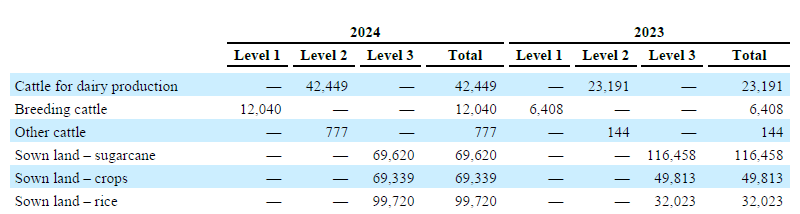 The following table presents the Group’s biological assets that are measured at fair value at December 31, 2024 and 2023 (See Note 17 for a the description of each fair value level):
