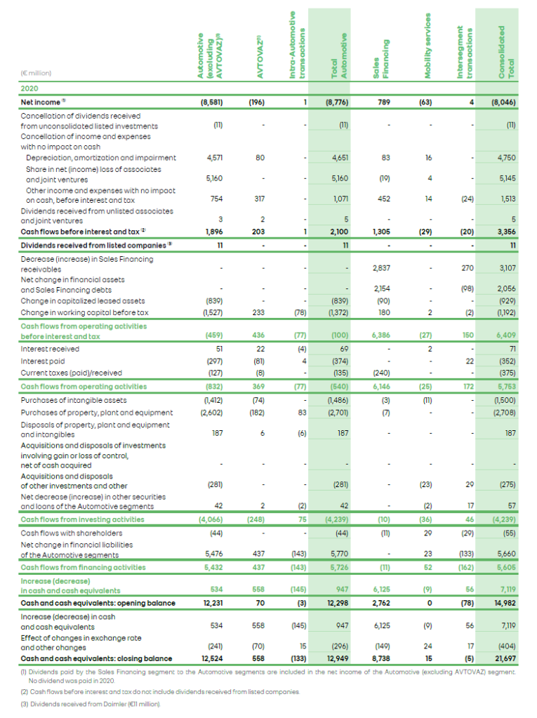 The net cash position or net financial indebtedness, operational free cash flow and ROCE are only presented for the Automotive segments.
