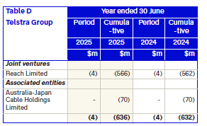 Table D presents our unrecognised share of losses for the financial year and cumulatively for our entities where equity accounting has ceased and the investment is recorded at zero due to losses made by these entities and/or reductions in the equity accounted carrying amount.