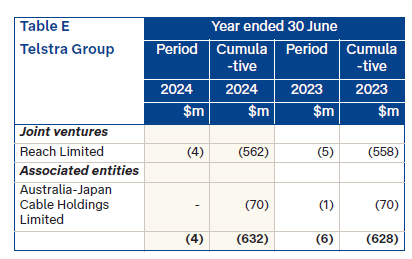Table E presents our unrecognised share of losses for the financial year and cumulatively for our entities where equity accounting has ceased and the investment is recorded at zero due to losses made by these entities and/or reductions in the equity accounted carrying amount.