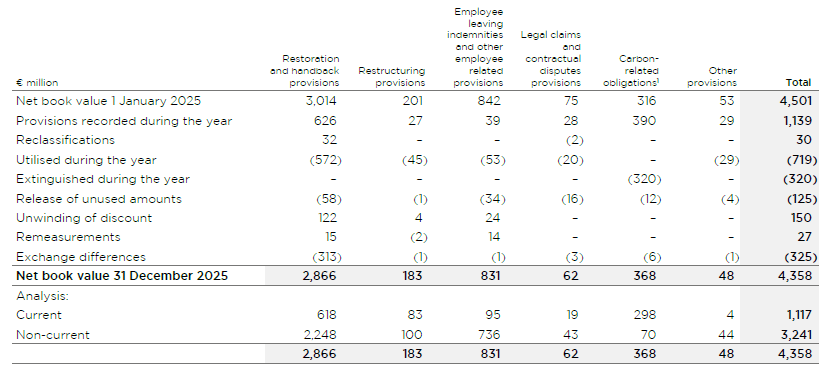At 31 December 2025, the Group recognised €2,866 million in respect of maintenance, restoration and handback provisions, principally in respect of leased aircraft (31 December 2024: €3,014 million).