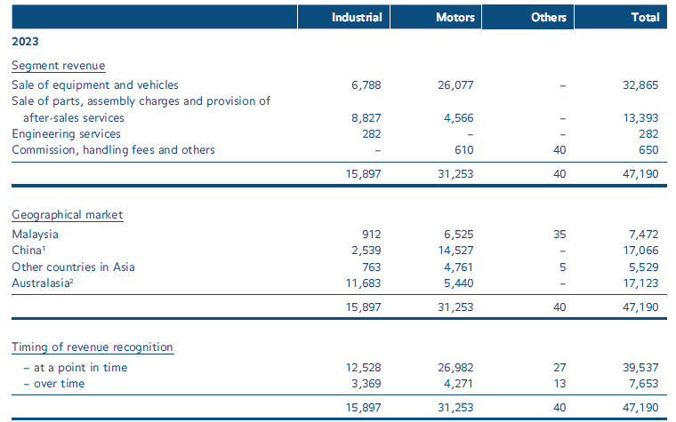 UMW division’s revenue consists primarily of sale of vehicles, equipment and parts and provision of after-sales services or related services. The revenue recognition policy for these transactions are as per the revenue recognition of similar transactions under the Industrial and Motors segments as set out in Notes 3(p)(i) and 3(p)(ii).