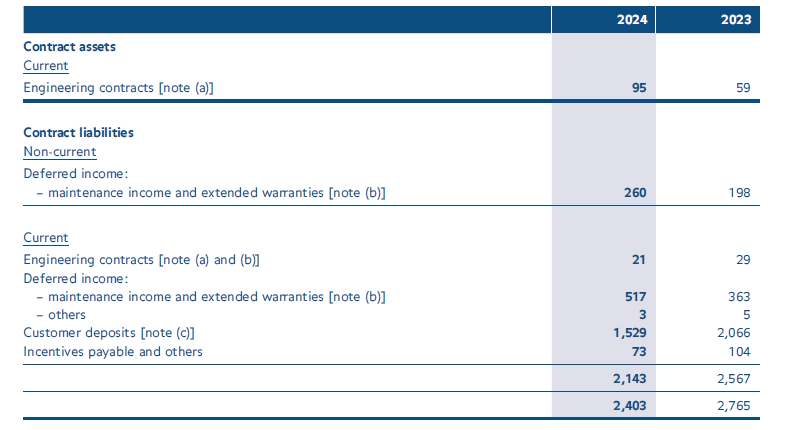 Contracts that bundle the sale of equipment, after-sales maintenance, provision of parts credit and extended warranty are recognised as distinct performance obligations for revenue recognition purposes. Parts credit represents prepaid amounts for equipment parts which customers will redeem in the future. Credit is given together with the sale of machine based on negotiated terms with the customer. Revenue from parts credit is recognised upon utilisation of credit for parts exchange.
