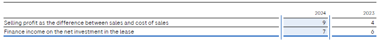 Currently the Group does not have any income from the variable lease payments of finance leases. The carrying amount of the net investment in finance leases reported as receivables was CHF 148 million (2023: CHF 137 million).