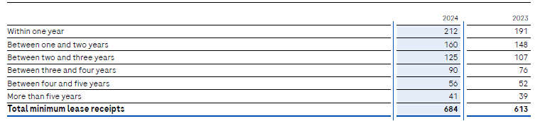 Lease income in 2024 was CHF 792 million (2023: CHF 707 million) and was included in sales. Of this CHF 545 million (2023: CHF 485 million) relates to variable lease payments not depending upon an index or rate.