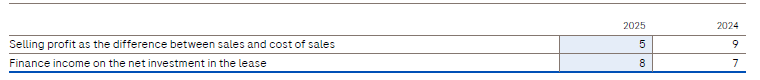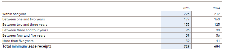Lease income in 2025 was CHF 785 million (2024: CHF 792 million) and was included in sales. Of this CHF 622 million (2024: CHF 545 million) relates to variable lease payments not depending upon an index or rate.
