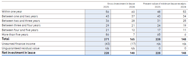 Currently the Group does not have any income from the variable lease payments of finance leases. The carrying amount of the net investment in finance leases reported as receivables was CHF 228 million (2024: CHF 148 million).