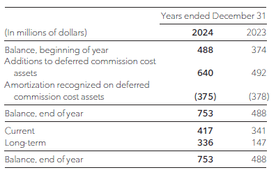 Below is a summary of the changes in the deferred commission cost assets recognized from the incremental costs incurred to obtain contracts with customers during the years ended December 31, 2024 and 2023. The deferred commission cost assets are presented within “other current assets” (when they will be amortized into operating costs within one year of the date of the financial statements) or “other long-term assets”.